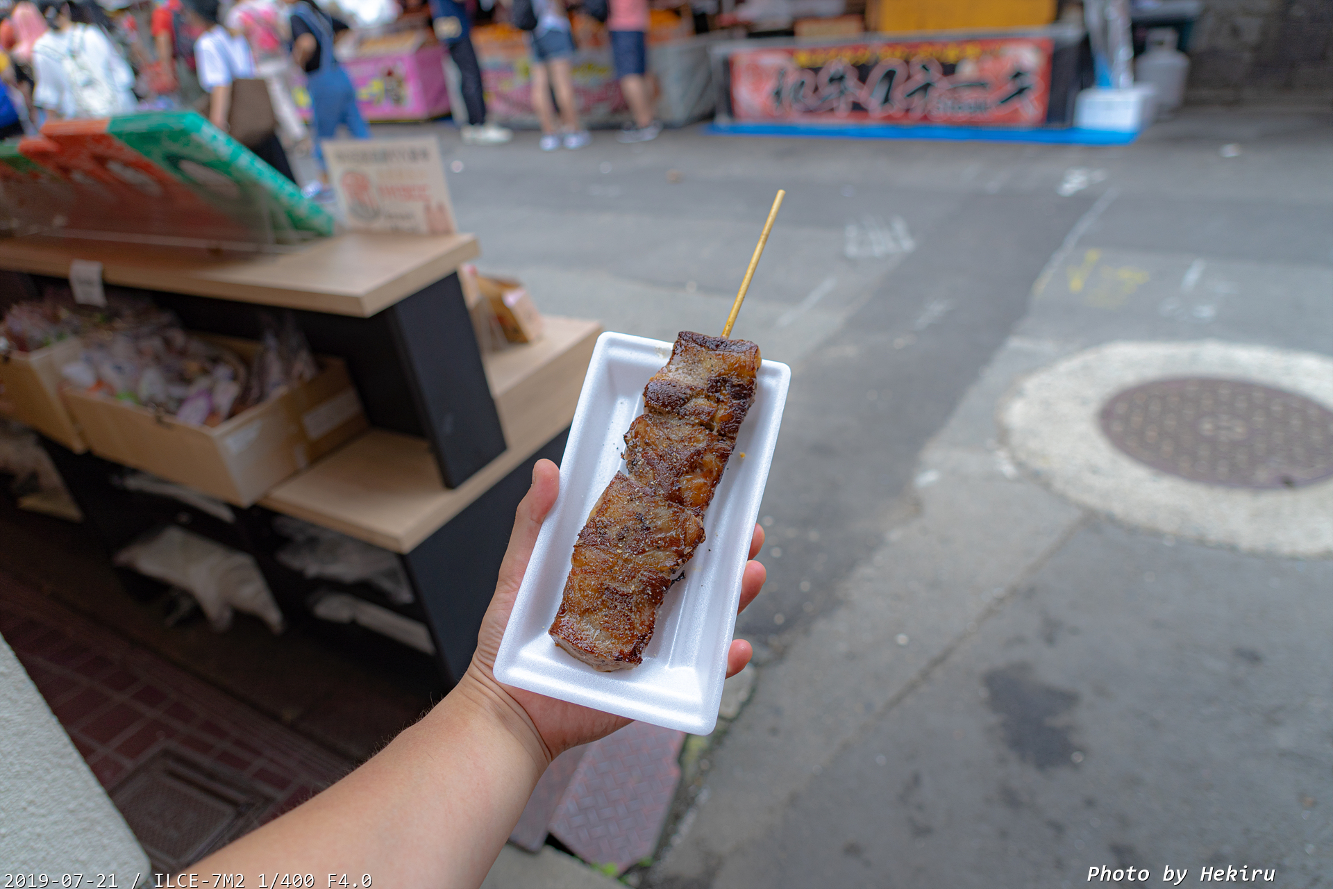 삼겹살꼬치!! 는 아니겠고 아마 챠슈구이가 아닐까 생각해본다.