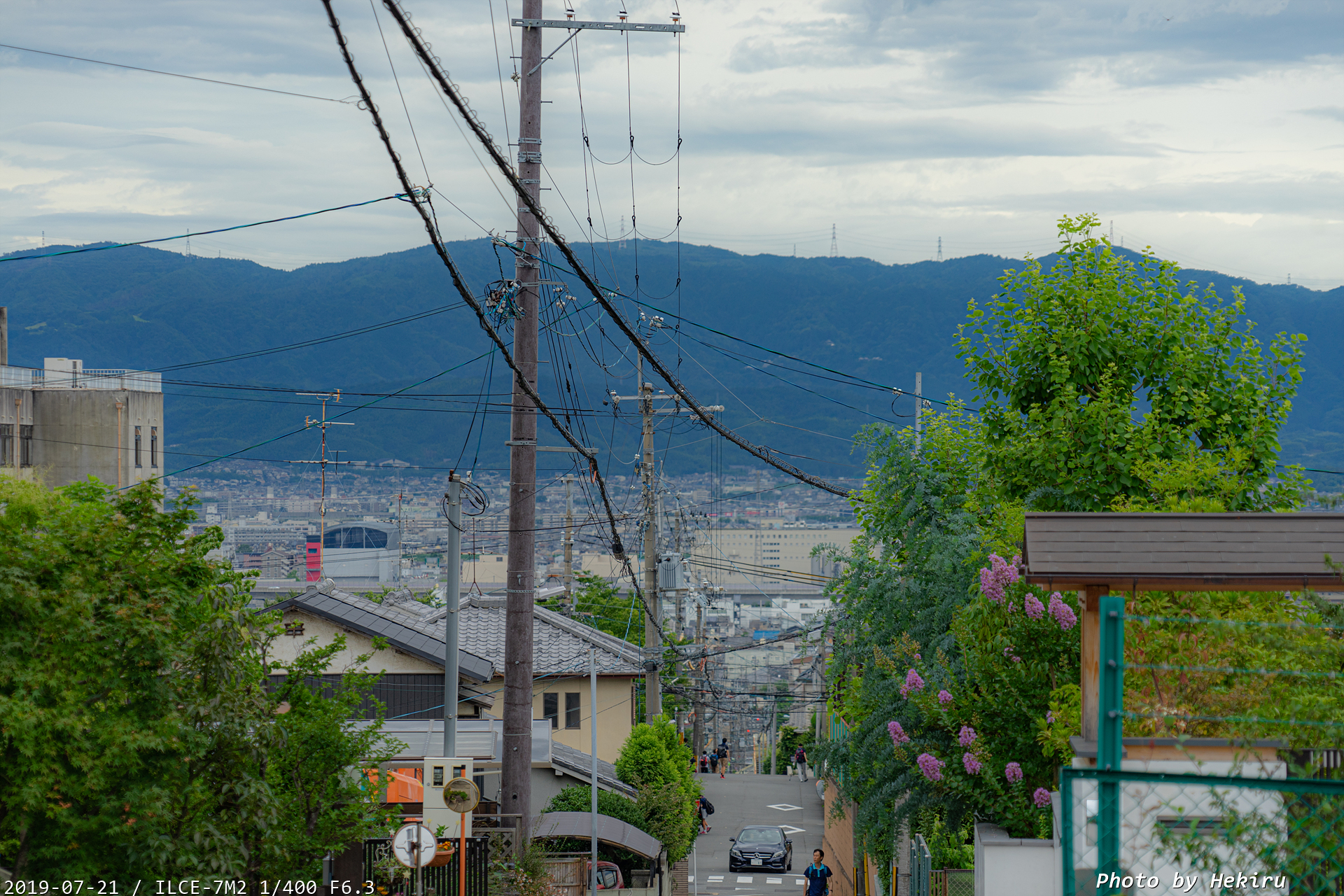 내려가는 언덕에서 후시미구를 담아보려고 했지만 시야를 가리는게 너무나도 많아서 안타깝다.
