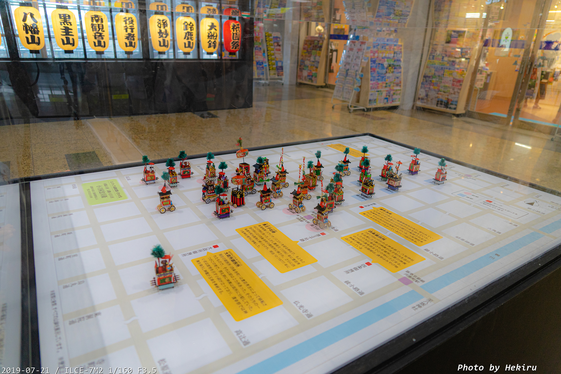 기온마츠리[祇園祭] 기온마츠리의 주요 볼거리인 야마보코 순행의 야마보코 미니어처와 그 위치를 전시해둔것을 보았다.